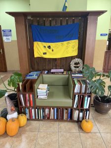 Особливу увагу студентів привернула патріотична експозиція бібліотеки, присвячена українській ідентичності, мові та героїзму захисників України. Символічне поєднання національної символіки, мистецьких елементів та цитат українських письменників створює емоційно насичену атмосферу, що спонукає до осмислення історії та духовних цінностей українського народу.